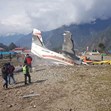 Тя се ударила в хеликоптерите на „Мананг Ер“ и „Шрий Ер“, които били паркирани на хеликоптерната площадка на около 50 метра от летището.