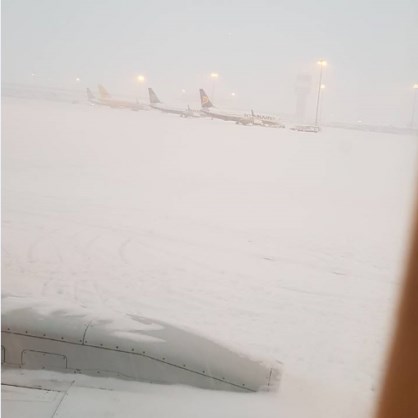 Ситуацията е тежка и има забавяне на полети, защото се чистят пистите и се пръскат самолетите срещу обледеняване.