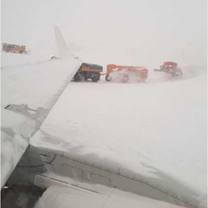 Самолет за Варна чака вече час и половина да го напръскат срещу обледяване, съобщи пътник предаде Дир.бг.