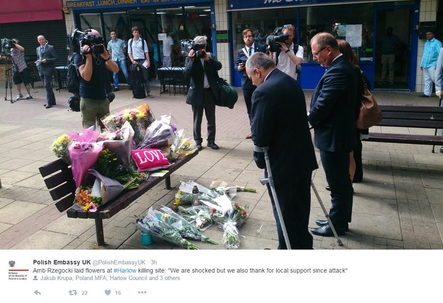 Братът на жертвата Радек посети местопрестъплението и каза, че полицията го е информирала как Арек е нападнат, само защото говорел на родния си език.