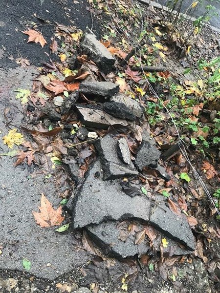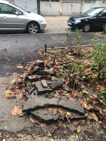 На улица "Митрополит Григорий” през месец юни започна ремонт на тротоари и бе разкопано. Ремонтът завърши, но вече 6 месеца стоят парчетата изрязан и захвърлен асфалт от ремонтната фирма.