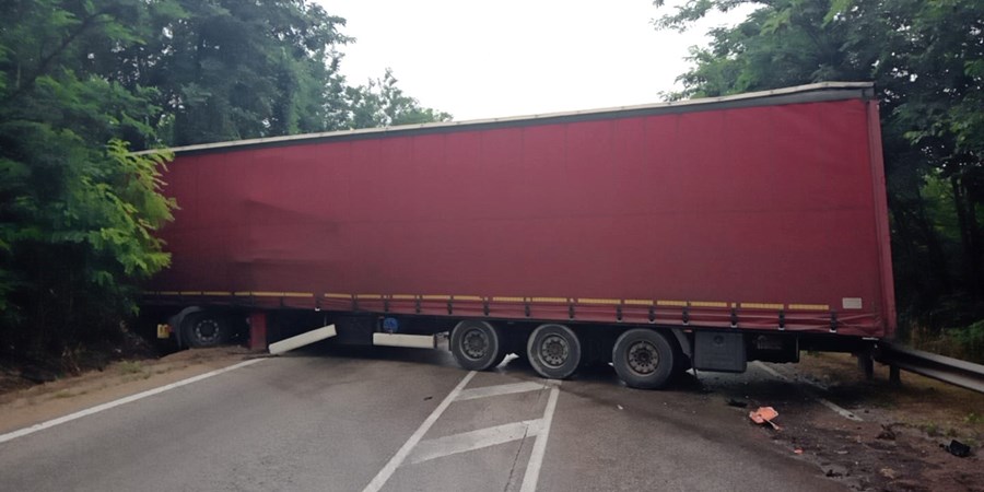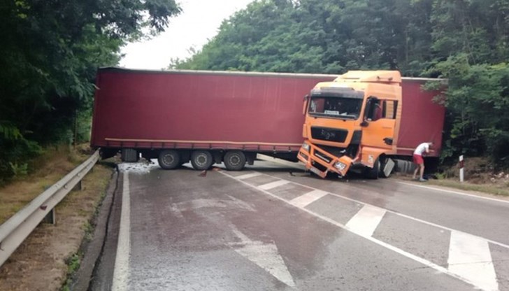 ТИР е се завъртял напречно на пътя и напълно ограничи движението в Прохода на Републиката