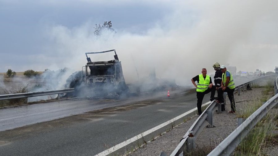 ТИР изгоря на магистрала „Струма“