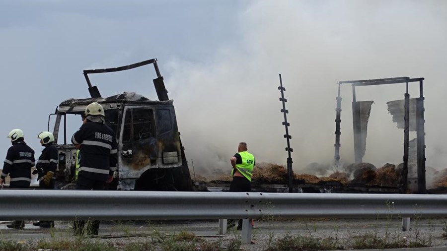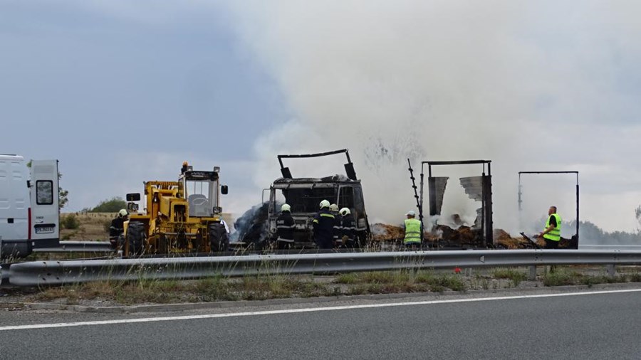 ТИР, натоварен със слама, се запали в движение изгоря напълно на автомагистрала „Струма“ край радомирското Старо село.