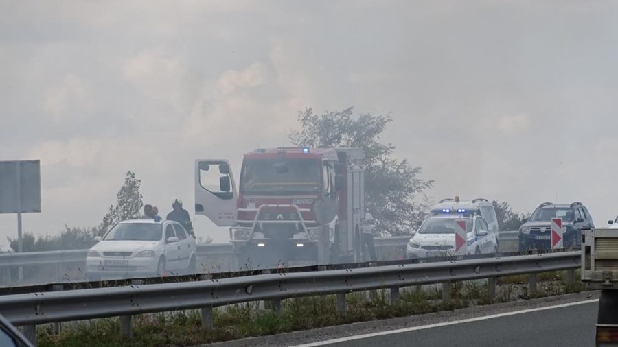 Товарният автомобил пламва в движение, спира след включването откъм Старо село, в началото на спускането към Долна Диканя. Идват два противопожарни екипа от Радомир. Товарът слама продължаваше да тлее и задимява магистралата и към 15.30 часа.