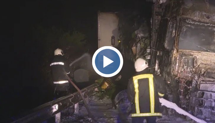 По първоначална информация пожарът е станал след катастрофа между два тежкотоварни автомобила, информира bTV.
