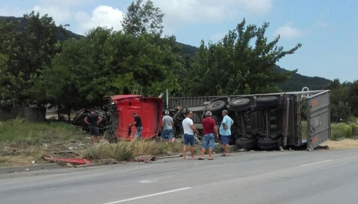 Причините за преобръщането на камиона все още се изясняват. Шофьорът е останал блокиран в кабината, защото превозното средство е е обърнало от страната на неговата врата. На мястото е пристигнал екип на пожарната, който е успял да измъкне човека.