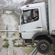 ТИР надвисна над река, шофьорът заклещен в кабината