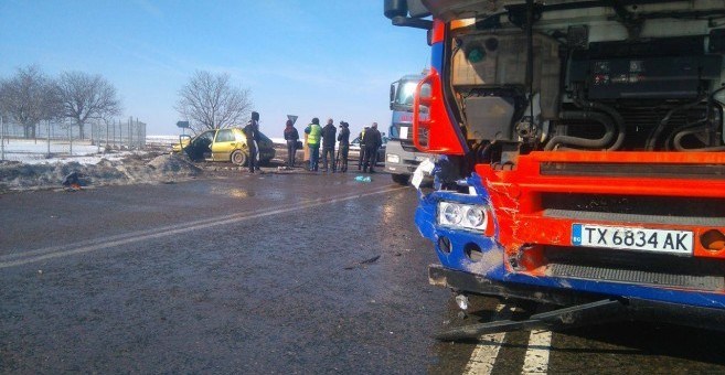 Тежка катастрофа стана днес между кола и камион на кръстовището до магазин "Джъмбо" в Русе, съобщи briagnews.bg.