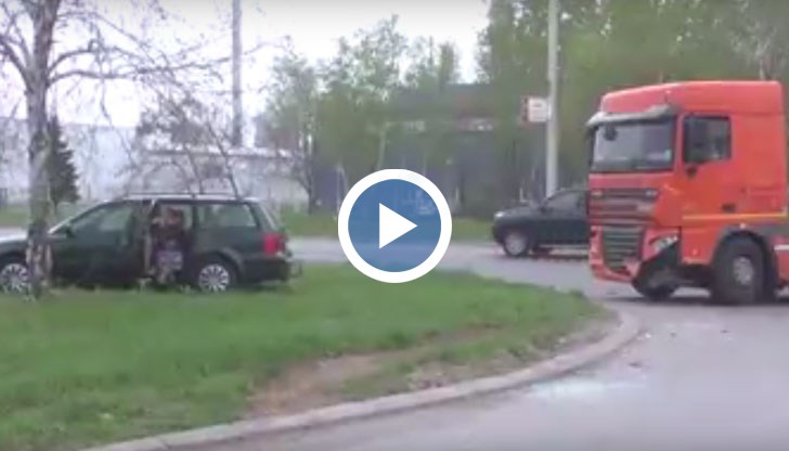 Шофьор на ТИР с румънска регистрация не спазил знака, който забранява левия завой и блъснал идващия в съседната лента лек автомобил. В резултат на удара, колата изхвърчала в зелената площ, която разделя двете платна на булеварда.