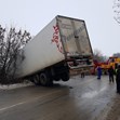 Днес по обяд започна изтеглянето на авариралия камион със специализирана техника, при което и към момента целия път е затворен за движение.
