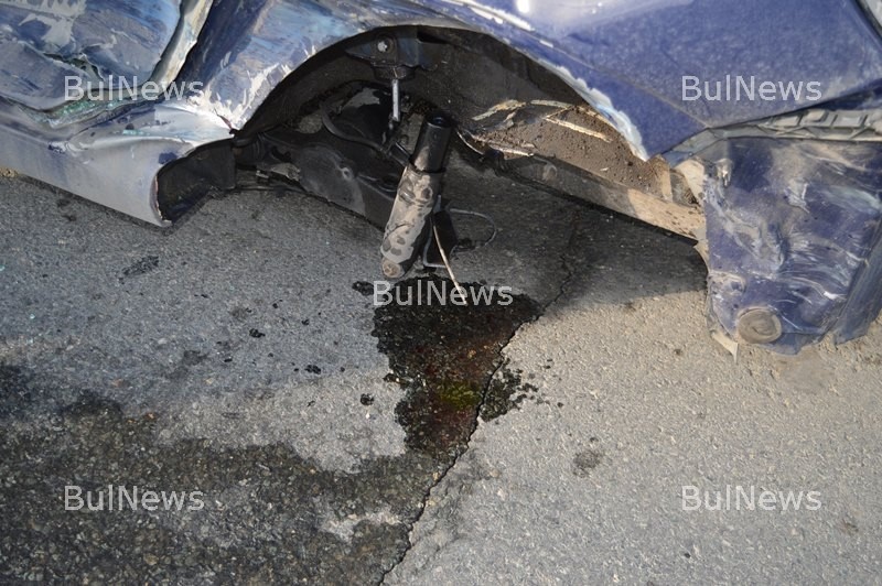 По целия обходен път има разпилени части от ТИР-а и леката кола. От удара „Опел“-ът се е завъртял на пътното платно и е спрял в мантинелата. Сблъсъкът е бил толкова силен, че леката кола е напълно смазана. На около 20 метра от нея по пътното платно се вижда част от ресьора й, а задната лява гума е буквално откъсната. Цялата лява страна на автомобила е смачкана, както и предницата му, от която висят фарове и други части.