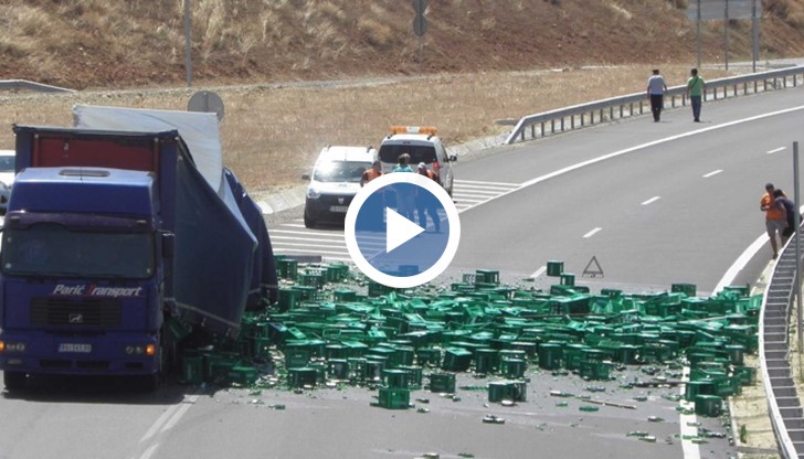 ТИР изсипа стотици каси бира и затвори магистрала "Струма" край Благоевград, предаде БГНЕС.