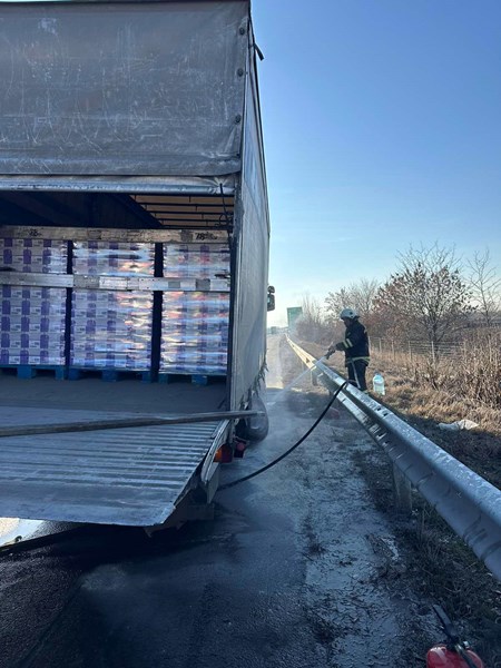 Превозваният товар от шоколадови изделия е запазен благодарение на навременната намеса на огнеборците. Водачът на тежкотоварния автомобил не е пострадал при инцидента.