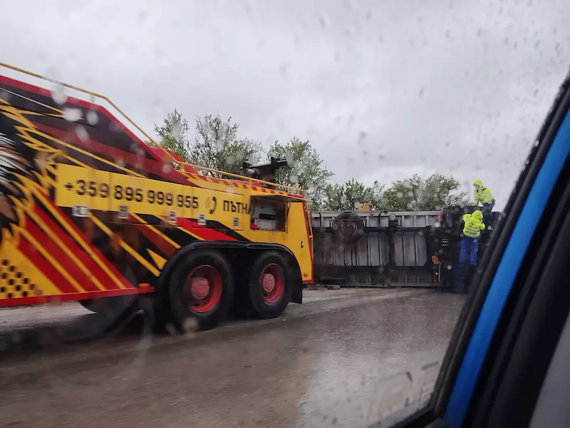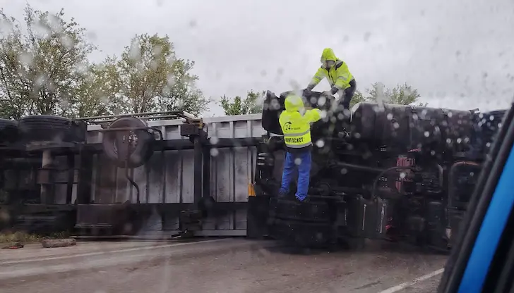 Тежък пътен инцидент с обърнат ТИР блокира движението по главния път между Русе и столицата. Произшествието е станало в участъка между селата Пейчиново и Масларево, на около 14 километра от разклона за крайдунавския град, като е предизвикало сериозно задръстване в района.