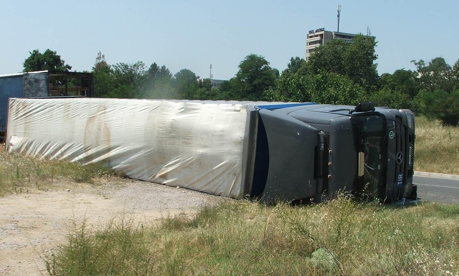 Камионът се движил по улица „Крайречна“ и на завой, без да има спирачен път, внезапно излязъл от пътя и се обърнал на дясната си страна.