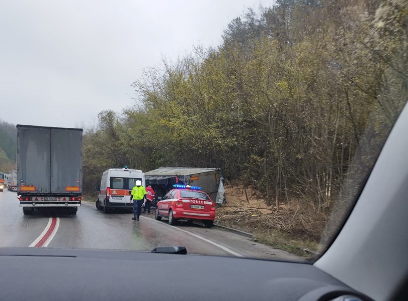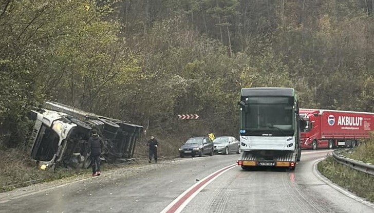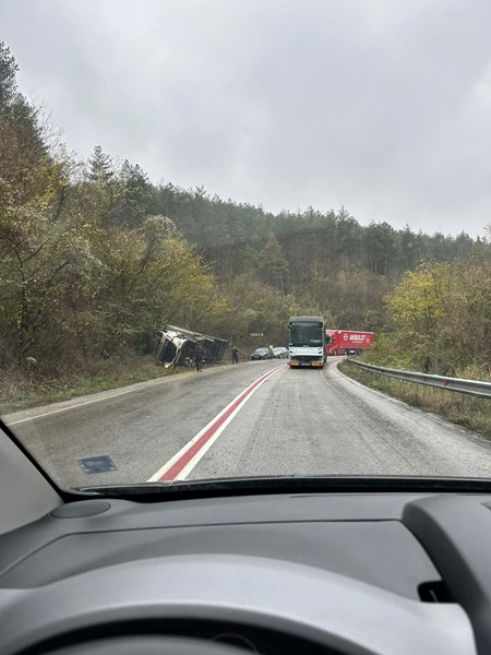 Катастрофа с камион е станала днес край Велико Търново. Тежкотоварното превозно средство е напуснало платното за движение и се е обърнало странично. Инцидентът е на Присовските завои, съобщи Glasnews.bg.