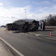 Предполага се, че камионът е взел завой с несъобразена скорост на слизане от магистралата.