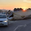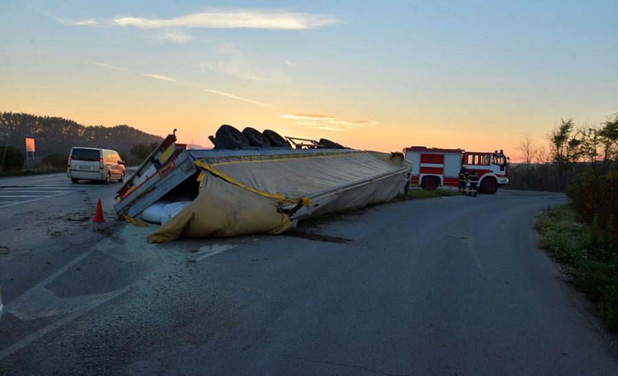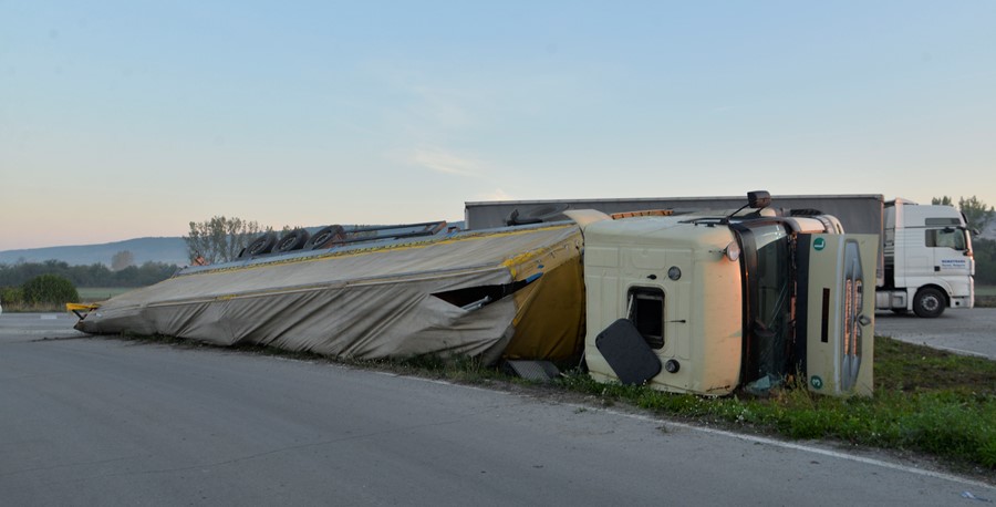Камионът излиза от пътя и шофьорът успява да го върне обратно, но тежката композиция се преобръща. Посоката на движение е от Разград към Русе, а мястото е веднага след с. Гецово.