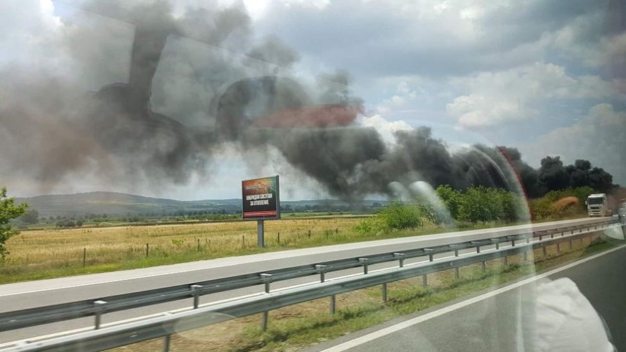 ТИР се запали на магистрала „Тракия“ в посока Бургас при 85 км.