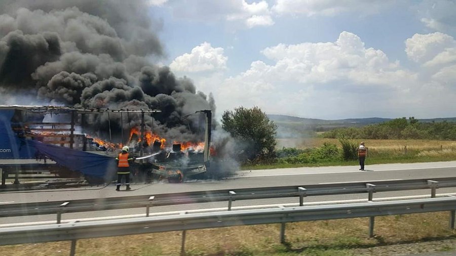 ТИР се запали на магистрала „Тракия“