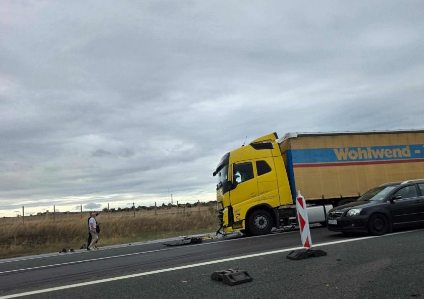 Инцидентът е станал днес около 15:00 часа на 265-ия километър на аутобана в посока София, в участък, който е стеснен заради ремонтни дейности.