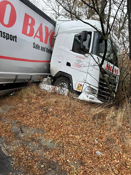 Тежкотоварният автомобил се е завъртял и заема едното пътно платно