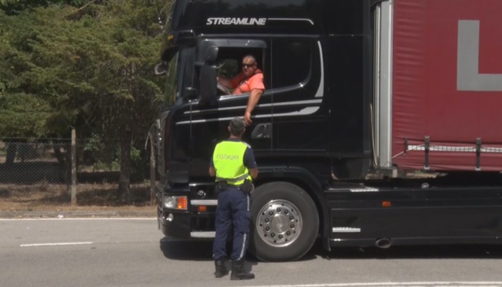 Температурата в Русе в 13:30 часа е почти 40 градуса. Много от тировете обаче продължават да се движат, докато не ги засече патрул на „Пътна полиция“.