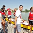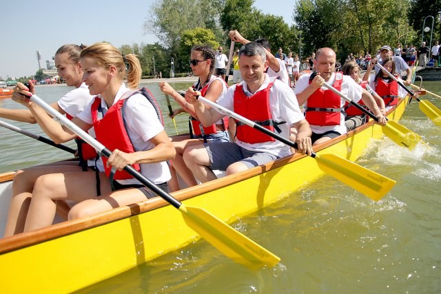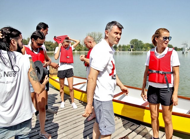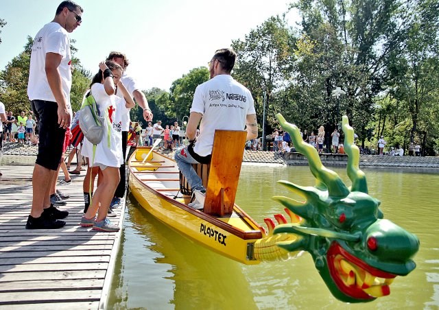 От радост, че отборът му печели надпреварата с драконови лодки на Гребната база, баскетболният треньор Тити Папазов скочи във водата, но при полета си обърна лодката.