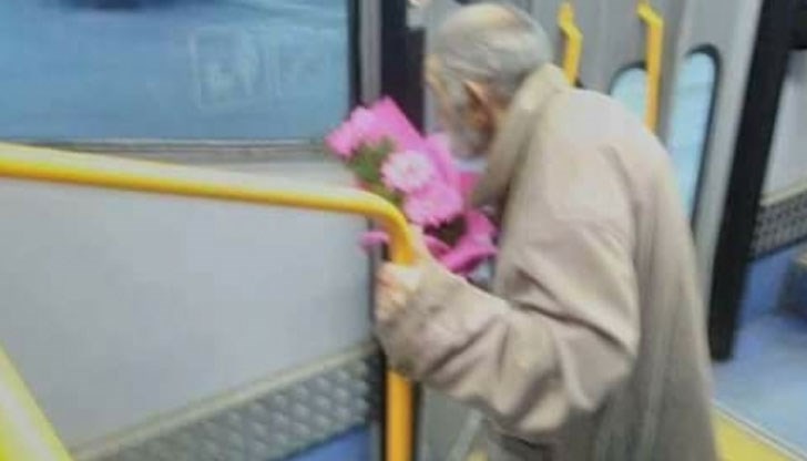Снимка на белобрад старец, който се вози в градския транспорт с букет гербери, успя да разчуства социалните мрежи.