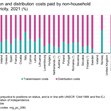 Разходите за пренос и разпределение се отчитат само веднъж годишно, в края на второто полугодие. Този параграф се отнася до данни за 2021 г. Идентично с битовите потребители, разходите за разпределение имат най-голям дял в сравнение с разходите за пренос. Това е нормално за всички видове мрежи, включително и за електроенергийната система. Преносната мрежа се използва за пренос на големи количества енергия на големи разстояния. Разпределителната мрежа обикновено е мястото, където се свързват потребителите. Разпределителната мрежа е по-гъста от преносната, поради което се очаква делът ѝ в разходите да бъде по-висок.
