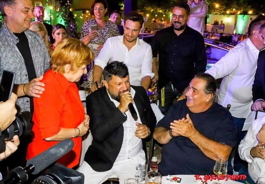 "Vasilis Karas - Nikos Makropolos - Antonis Remos - заедно на маса", написа в социалната мрежа Тони Стораро към снимка от сватбата, на която са тримата изброени изпълнители.