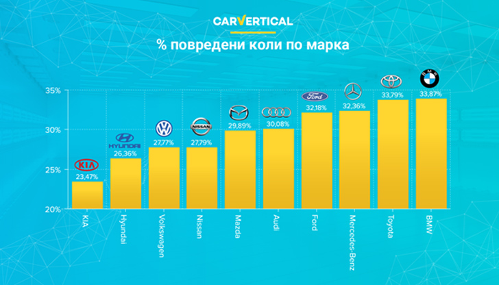 Класацията за употребявани автомобили, която сте напът да видите е базирана на процента повредени коли от всяка марка, спрямо общия процент анализирани такива.