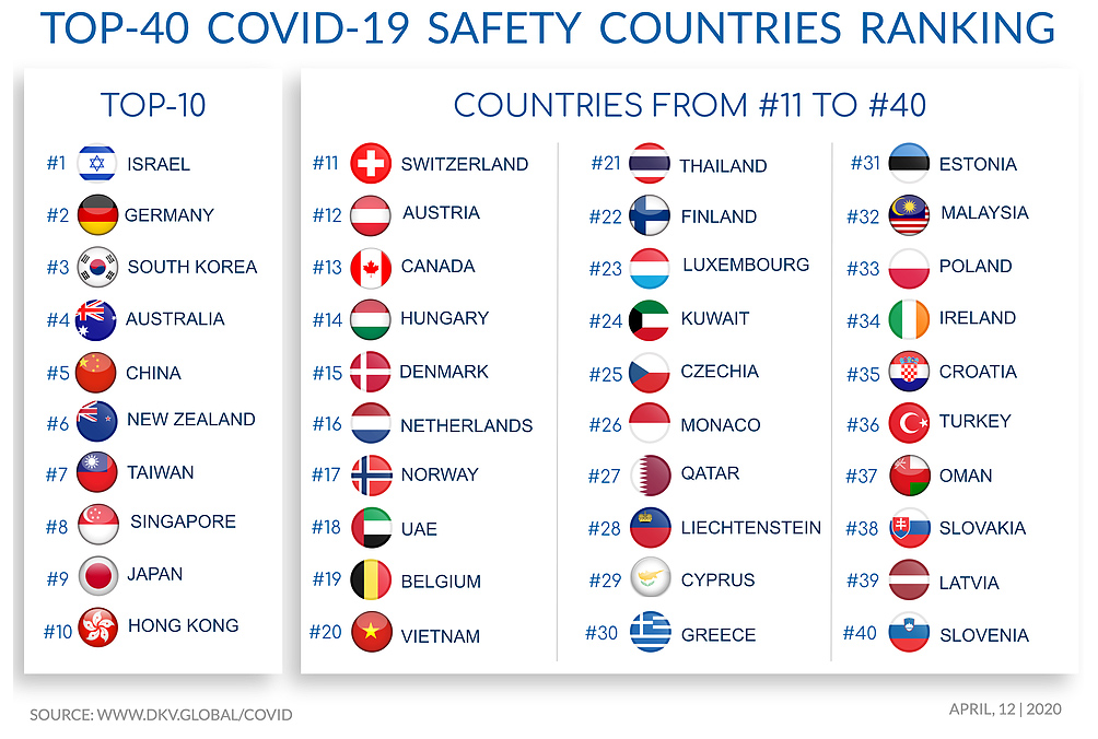 ТОП 40 на най-безопасните държави от COVID-19