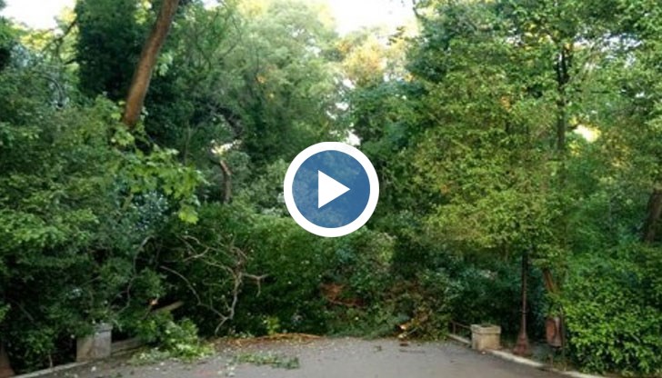Огромни дървета паднаха върху пешеходен мост в Морската градина във Варна.