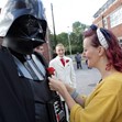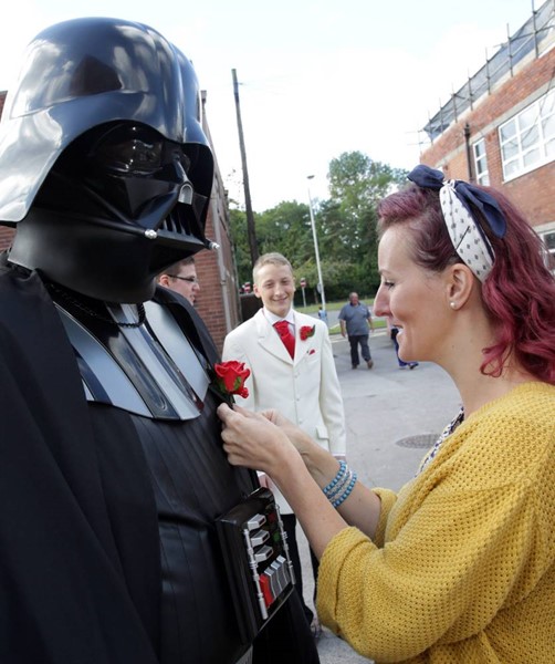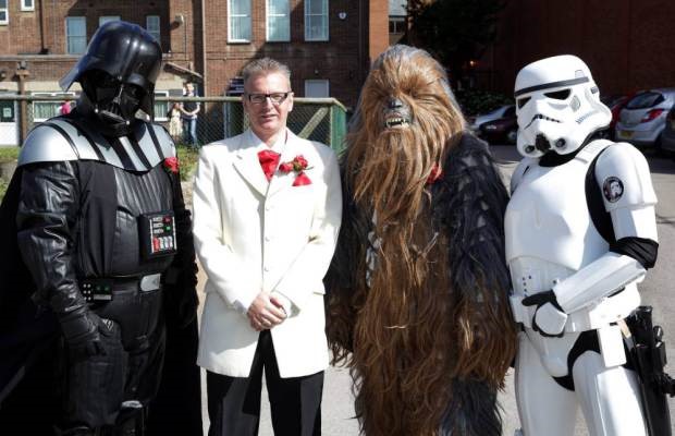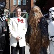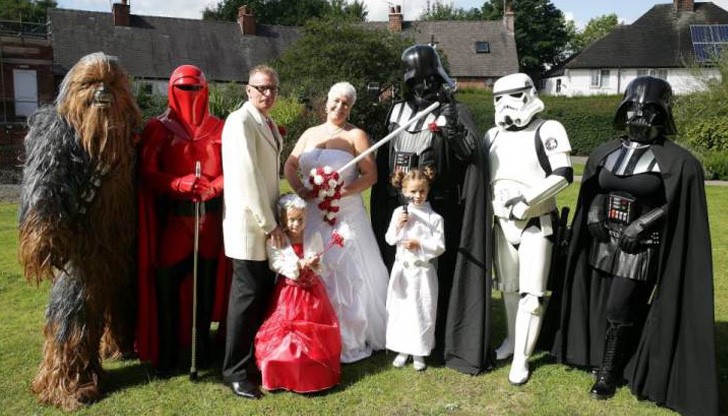 Младоженците, луди фенове на сагата "Междузвездни войни", решиха, че обкръжението в най-важния ден от живота им трябва да наподобява максимално сцена от фантастичната поредица.