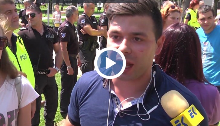 "Привърженици на ГЕРБ - пребиха ме, счупиха ми очилата, хвърлиха ми телефона, бутнаха ми колелото. Пребиха и един възрастен господин, който тръгна да снима в този момент, счупиха един-два телефона"