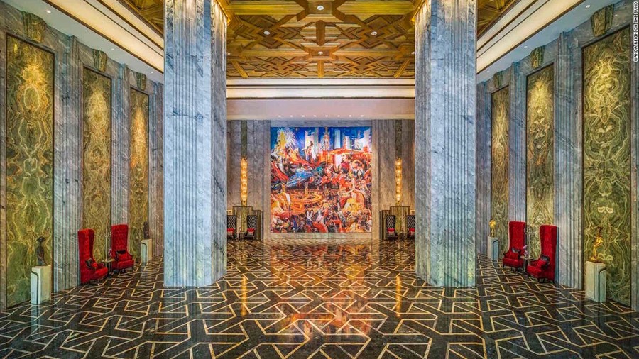 Огромни мраморни колони подпират високите 10 метра тавани, разказва Си Ен Ен.