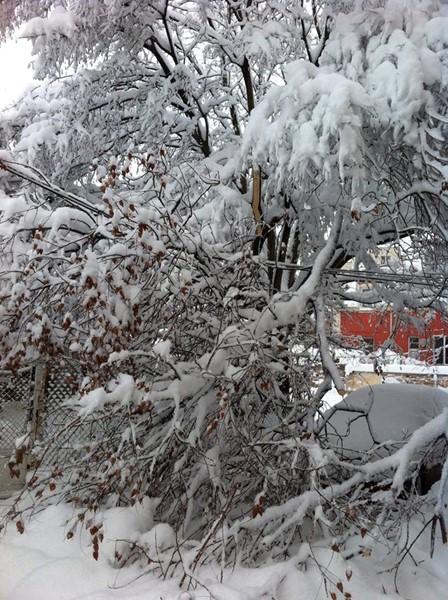 4 клона на дървета са счупени. Алармирали сме 112, след 7 пъти звънене. Клоните висят върху жици, които може да се скъсат всеки момент