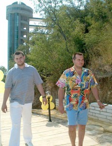 За топло предястие: Печен камчатски краб с рататуй и капучино от кокосово мляко. Основно: стек от есетра, фарширован със зеленчуци и сос „Шампан“. Освен сок от червена боровинка и клюква, както и други разхладителни напитки, имаше водка „Kremlin“, бяло вино Pinot Aligote Selection Chateau le Grant Vostok, и колекционерско шампанско Абрау-Дюрсо, реколта 1964г., както и Leopold Gourmel, реколта 1972г…