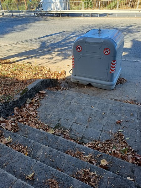 Минувачи сигнализират за контейнер, който препречва стълбище към аптека