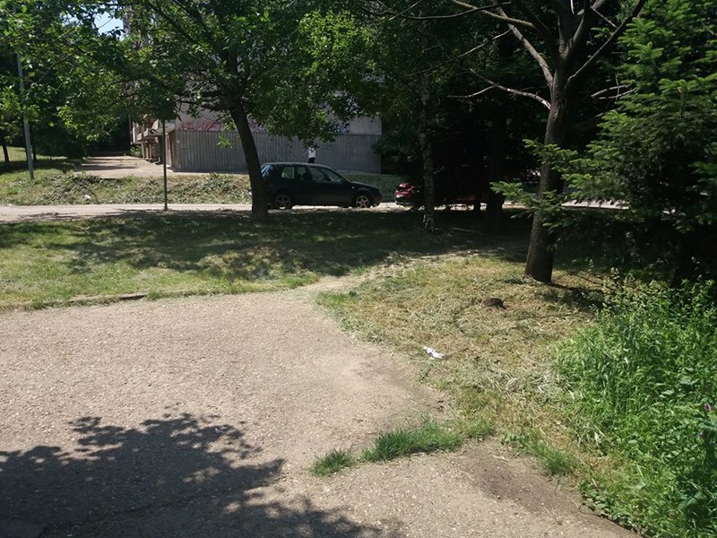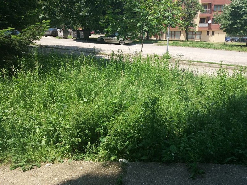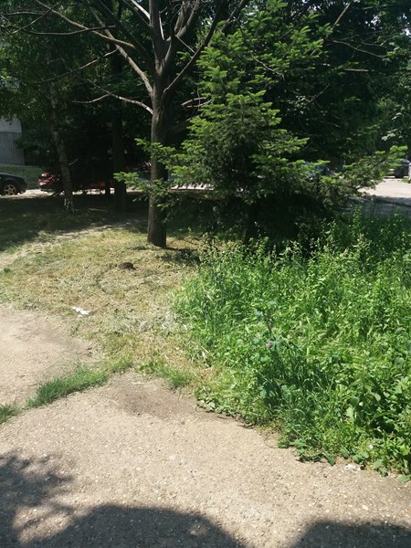В квартал "Дружба 1", на улица "Христо Ясенов" 2, много странно косиха тревата на половината блок.