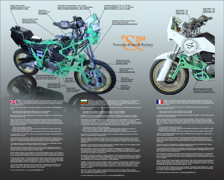 Създаден от Силвен Асалит, френски гражданин живеещ в България, този мотоциклет е изработен ръчно, в град Русе. Този проект бе започнат през 2003 г. Сглобен в извънработно време, основно вечерта и през уикенда. Мотоциклета бе изпитан за първи път през 2011 г., второ изпитание през 2014 г. и през 2016-2017 г. преминава успешно всички финални изпитания. В него са вложени около 6000 часа труд, за период от 15 години.
