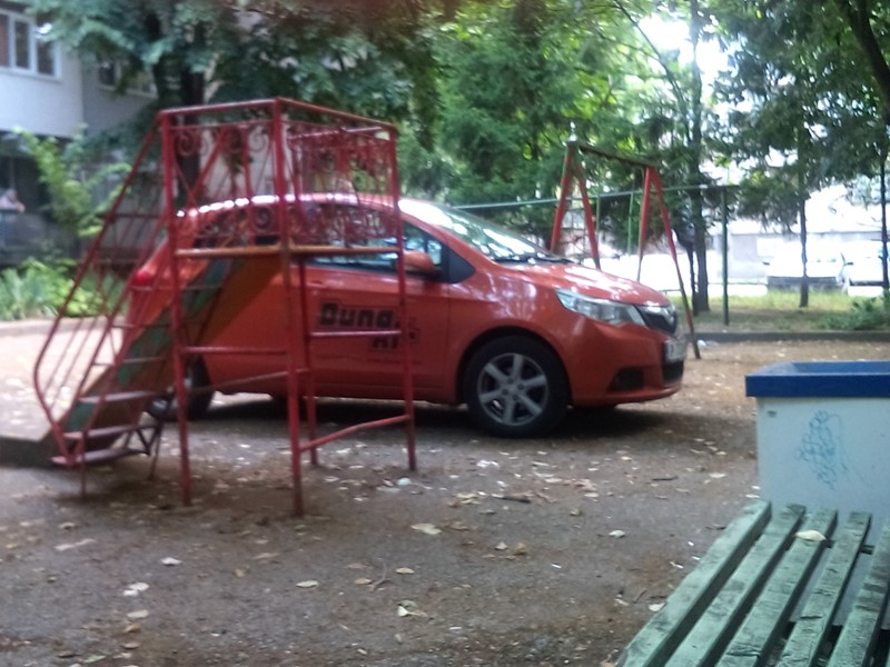 Този нагъл шофьор си е харесал детската площадка на бл.19 в кв."Здравец" в Русе, въпреки, че блокът има полупразен паркинг.
