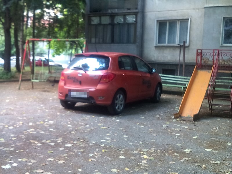 Този нагъл шофьор си е харесал детската площадка на блок 19
