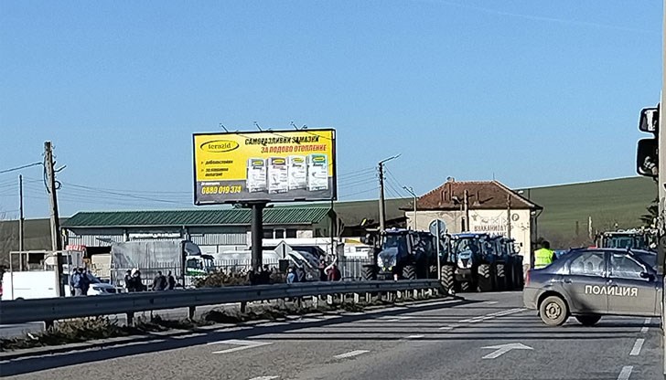 Към 10:00 часа пътят Русе - Бяла е блокиран от земеделци с тежка техника. На място има и екип на полицията.