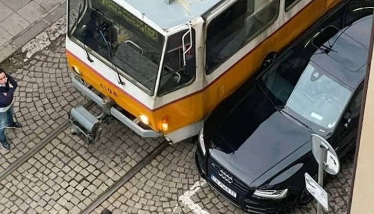 Трамвай удари неправилно паркиран автомобил в София