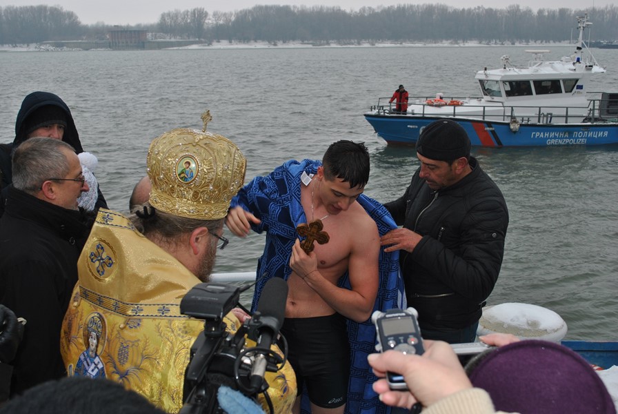 21-годишният треньор по плуване Теодор Цветков извади кръста от ледените води на Дунав на днешния Йордановден.
