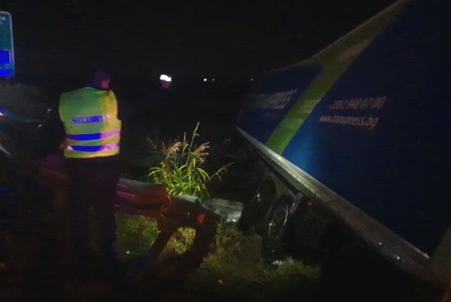 От сблъсъка единият ТИР се е обърнал извън пътя. Движението в района през цялата нощ се извършваше в една лента, при ограничение от 40 км в час.