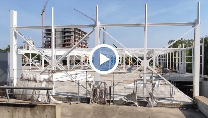 С бързи темпове върви и изграждането на високата сграда до спортната зала, която ще бъде с 15 етажа – 12 над земята и 3 подземни. Става дума за бизнес център с жилищна част и подземни гаражи с 1031,93 кв.м застроена площ. Общата разгъната площ съгласно одобрената виза за проектиране от община Русе е около 13 000 кв.м над земя, разпределена в 12 етажа – един етаж търговски площи, четири етажа офиси и седем жилищни етажа. Под земя се предвиждат три етажа с над 100 броя паркоместа и гаражи. Апартаментите са 74, офисите – 29, а гаражите – 99. Инвеститор е „Проект Русе“, а строителството се извършва от „Интис“.